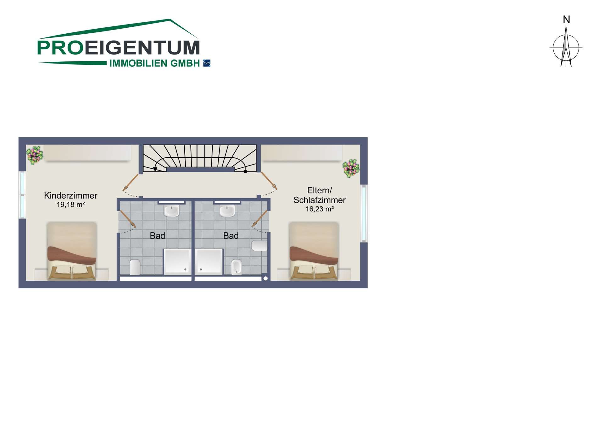 Im Obergeschoss befinden sich zwei großzügig geschnittene komfortable Schlafzimmer mit französischen Balkonen, dezentraler Lüftung und jeweils eigenem Bad en Suite. Das ausgebaute Dachstudio mit vier Dachflächenfenstern ist offen, lichtdurchflutet und flexibel nutzbar – ob als Master Bedroom, Fitnessraum oder Jugendbereich. Bei Bedarf lässt sich der Raum durch eine Glas- oder Trockenbauwand abtrennen.