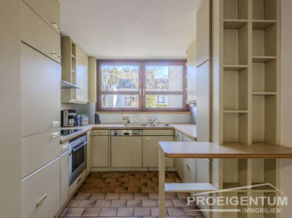 Ein großes, lichtdurchflutetes Wohnzimmer mit Blick in den kleinen Garten und 3 geräumige Schlafzimmer gewähren ein großzügiges Wohngefühl. Die offene Küche, die sich ein wenig erhöht über dem Wohnzimmer befindet, schließt die Köchin oder den Koch in die Gespräche im Wohnzimmer ein, ohne direkt in das Wohnzimmer integriert zu sein. Die für ein Reihenhaus außergewöhnliche Dachterrasse bietet einen wunderschönen Rückzugsort, auf der Sie in Lounge Sesseln die frische Luft genießen können oder auch die Möglichkeit haben, mit Hochbeeten Ihrer Pflanzleidenschaft nachzugehen. Zwei Bäder (1 x Wanne mit Fußbodenheizung, 1 x Dusche), ein voll unterkellertes Untergeschoss mit Hobbyraum, Vorratskeller und Heizraum und 2 Einzelgaragen mit Alu-Toren in der Tiefgarage runden das Angebot ab.