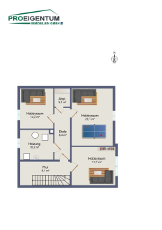 voll unterkellert, mit 3 Hobbyräumen und Heizraum sowie kleinem Abstellplatz