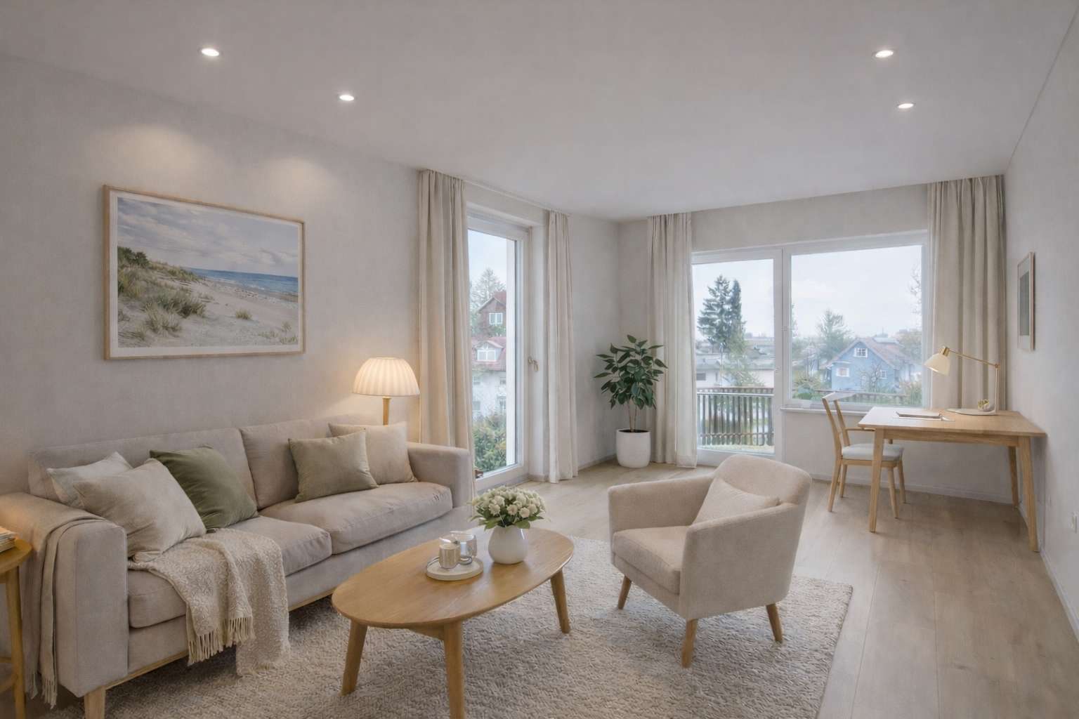 • lichtdurchfluteter, großzügiger Wohn- und Essbereich über die gesamte Front und direktem Zugang zur sonnigen Südterrasse
