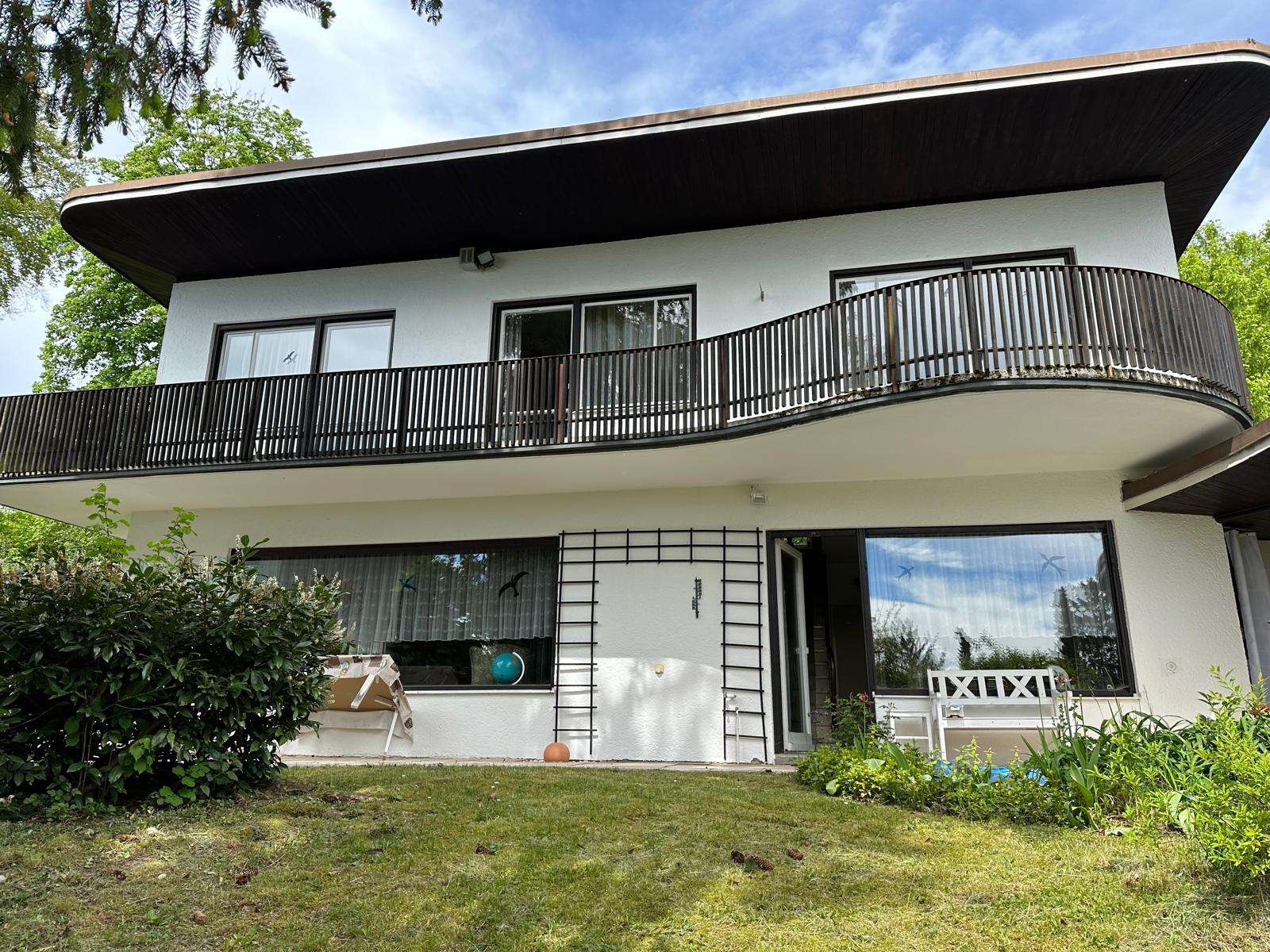 Wir präsentieren Ihnen diese stilvolle Architektenvilla aus den 1950er-Jahren, entworfen vom renommierten Architekten Hilmar Schumann. Das Haus liegt auf einem großzügigen Südhanggrundstück in einer der begehrtesten Wohnlagen Gautings und verbindet architektonische Eleganz mit einer außergewöhnlich idyllischen Einbettung in Garten und Natur.