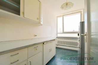 Das großzügige Wohnzimmer empfängt Sie mit Licht und Luft und öffnet sich zum großen Balkon – perfekt für entspannte Stunden im Freien oder sonnige Morgenkaffees. Die Küche mit Fenster ist praktisch geschnitten und bietet genug Platz, um kulinarische Ideen umzusetzen.
