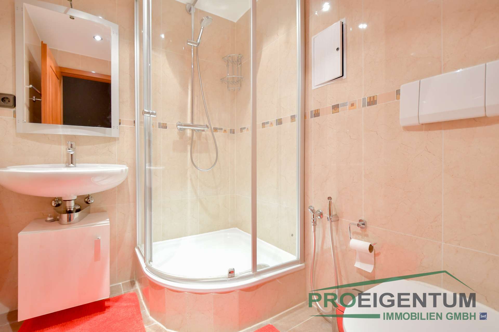 Ein attraktives Duschbad sowie eine Klimaanlage unterstreichen die gehobene Ausstattung