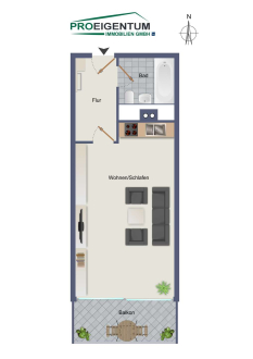 Die Wohnung wird voll möbliert angeboten und ist sofort bezugsfertig oder vermietbar.