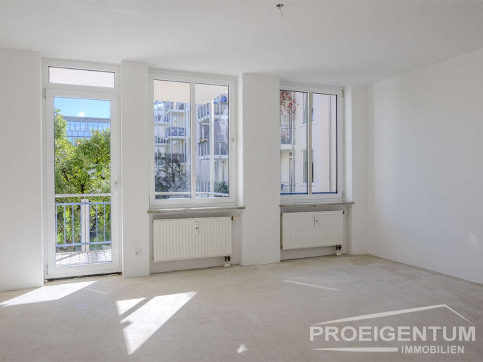 Die Wohnung hat in den Wohnbereichen keinen Bodenbelag; das gibt Ihnen die Freiheit, einen neuen Boden Ihrer Wahl verlegen zu lassen, und das, ohne zunächst den alten Boden herausnehmen zu müssen.