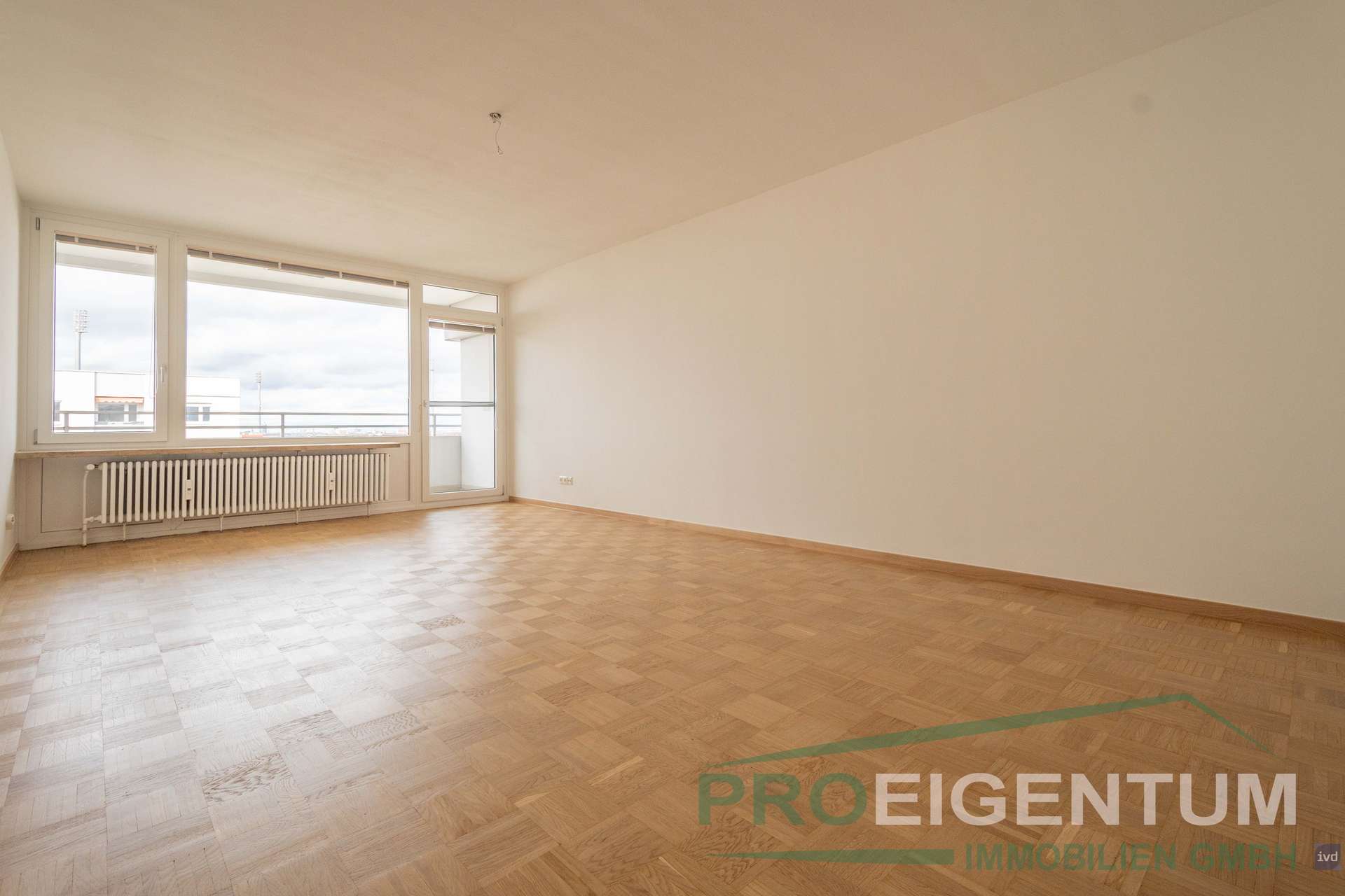 Diese hervorragend geschnittene 3-Zimmer-Wohnung überzeugt durch ihre Helligkeit, Großzügigkeit und eine schönes Aussicht auf München. Bereits beim Betreten spürt man die angenehme Wohnatmosphäre. Das großzügige Wohnzimmer mit frisch aufbereitetem Parkettboden bildet das Herzstück der Wohnung. Großflächige Fensterfronten durchfluten den Raum mit Licht und eröffnen eine Rundum-Sicht über die Dächer Münchens – von den Alpen bis zur Allianz Arena. Ein Ausblick, der jeden Tag aufs Neue begeistert.