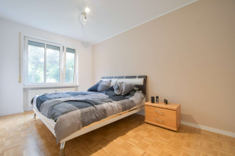 Direkt angrenzend an den Nordpark befindet sich eine gepflegte Wohnanlage, die sich ideal für Spaziergänge, Jogging und Erholung eignet. Das nahegelegene Naturschutzgebiet Kieferngarten bietet zusätzliche Möglichkeiten, dem Alltag zu entfliehen. Für die Anbindung an den öffentlichen Nahverkehr sorgen die U-Bahn-Station Kieferngarten der Linie U6 sowie eine Bushaltestelle der Linie 140, die jeweils in etwa zehn Minuten zu Fuß erreichbar sind. Geschäfte des täglichen Bedarfs, darunter REWE und Edeka, sowie die Volkshochschule befinden sich in unmittelbarer Nähe. Auch der Euro-Industriepark ist bequem mit dem Auto erreichbar.